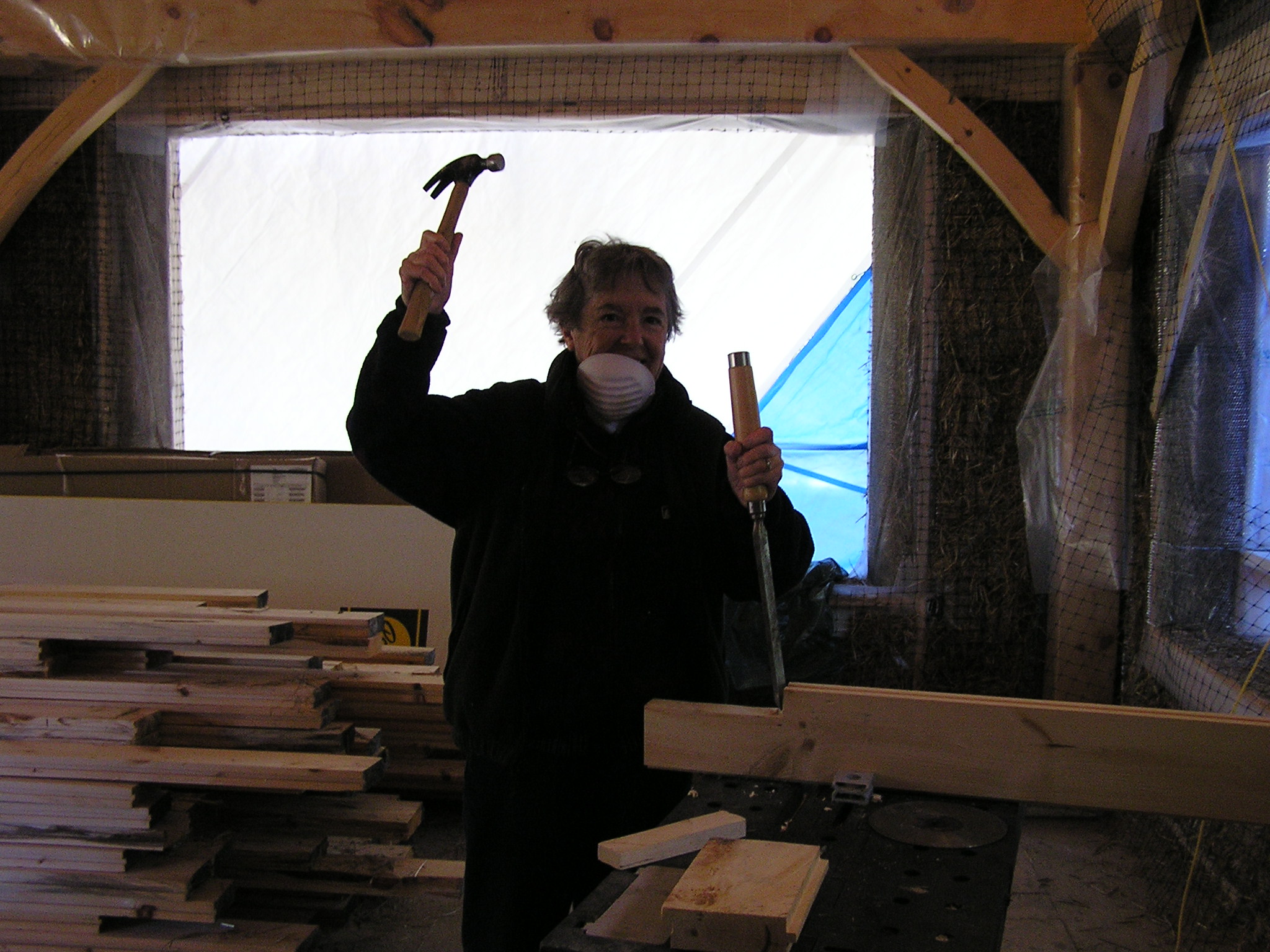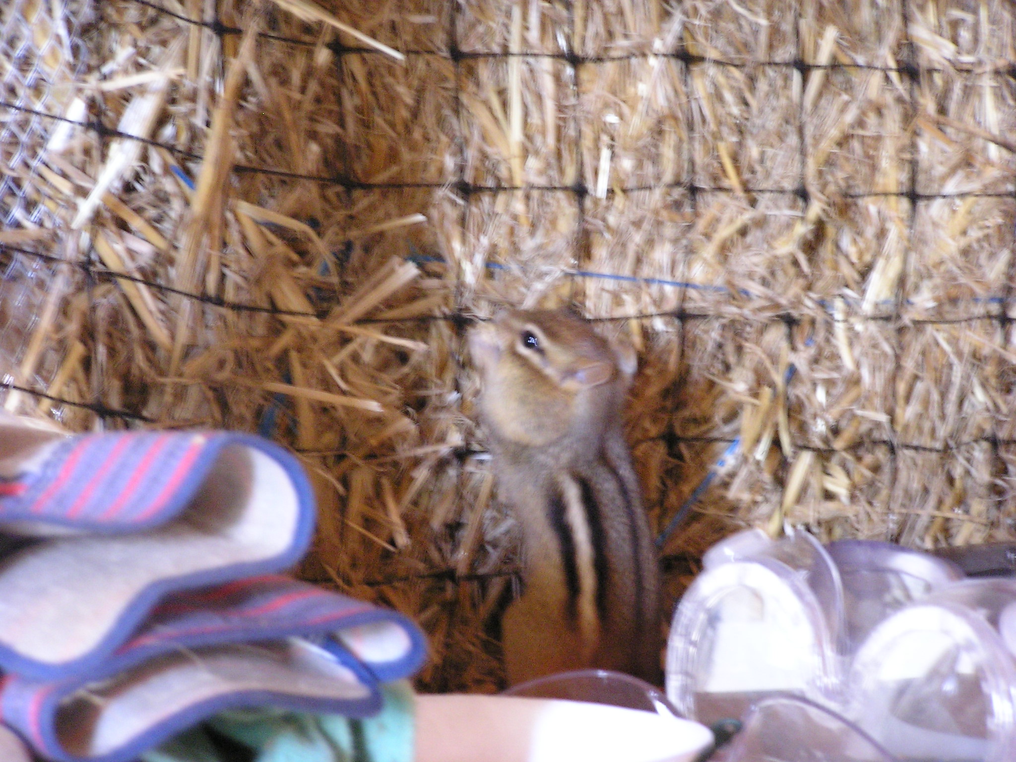 Mike stiching the wall and a chipmunk eating the wall